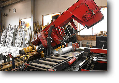 ・バンドソー切断機にて大径材料、平角棒、アングル材など様々な種類の材料切断が可能です。
